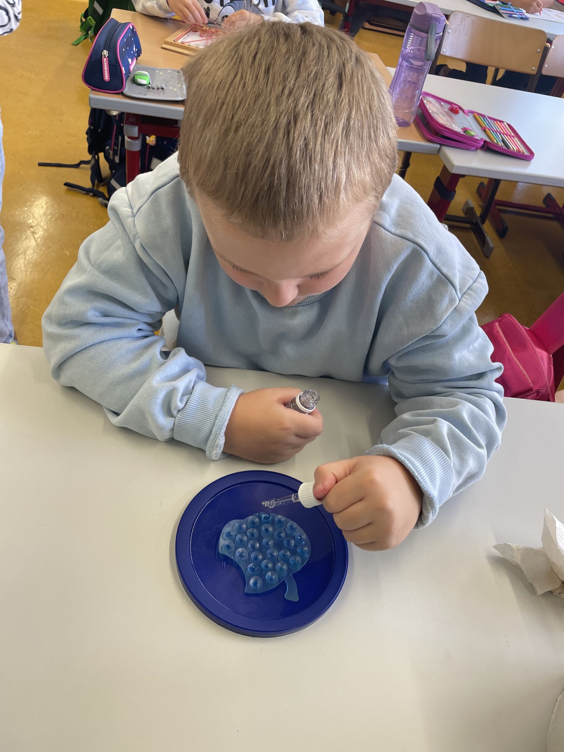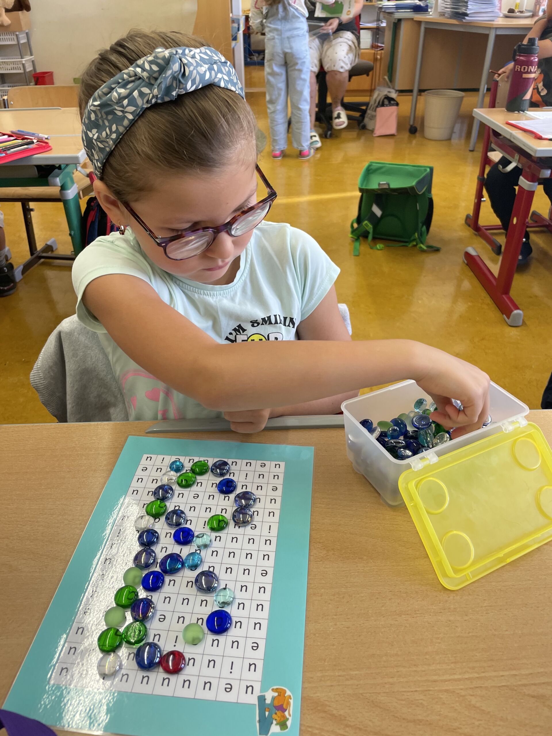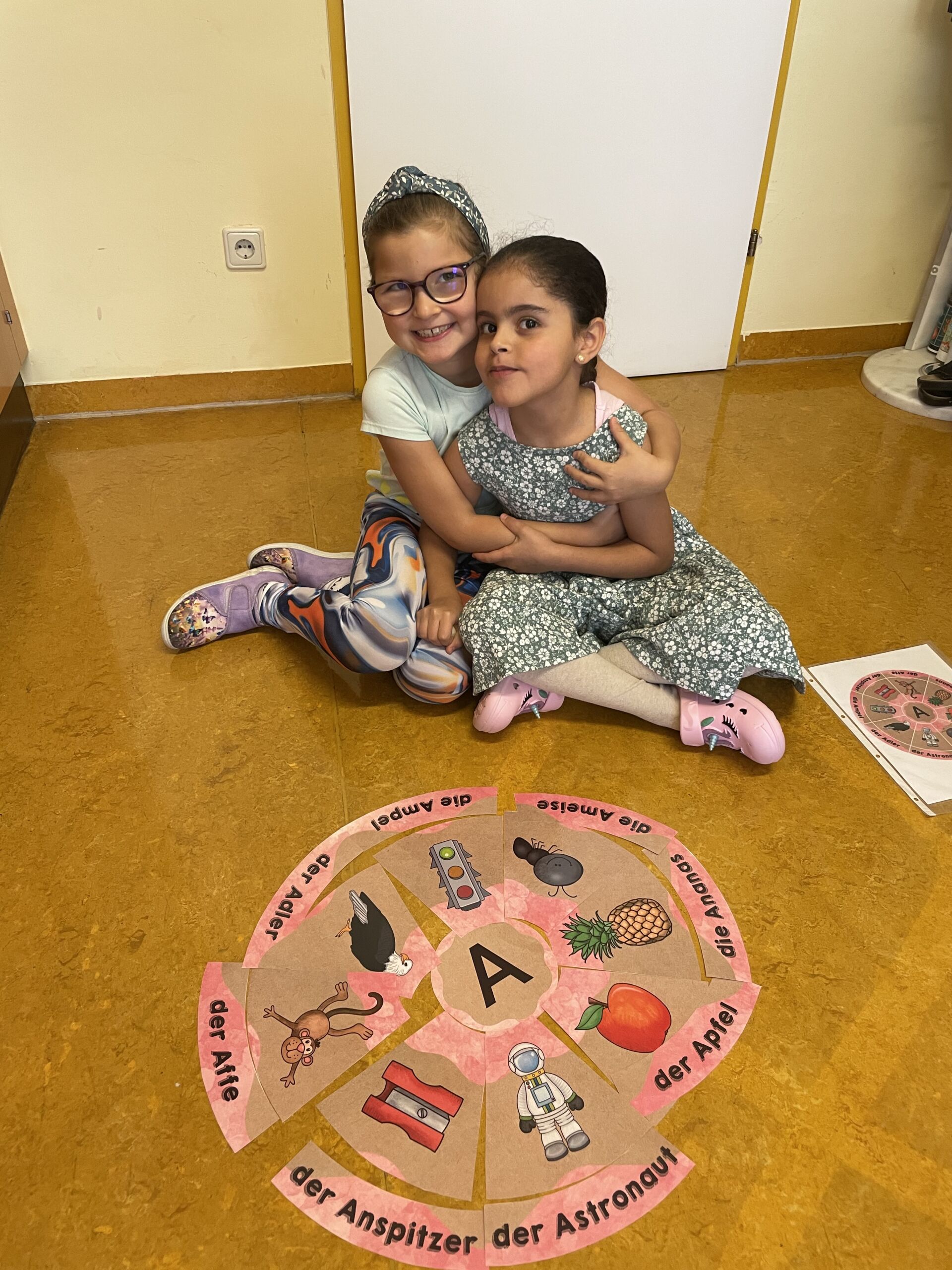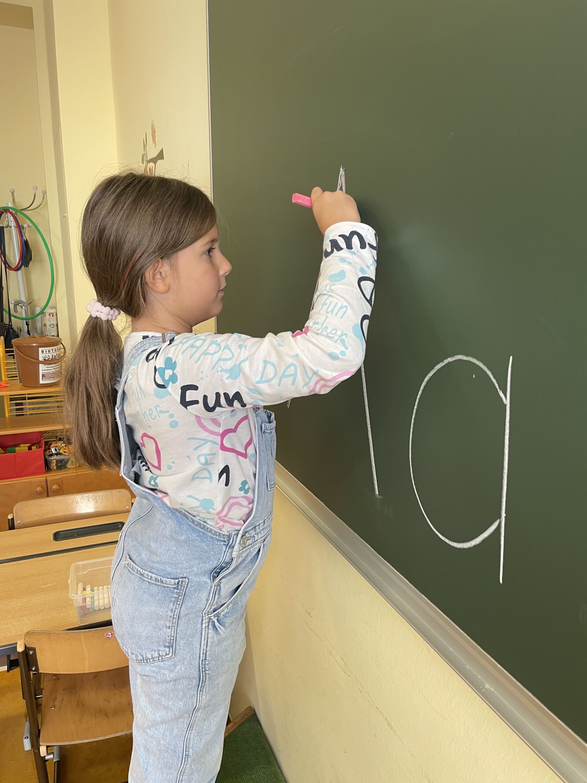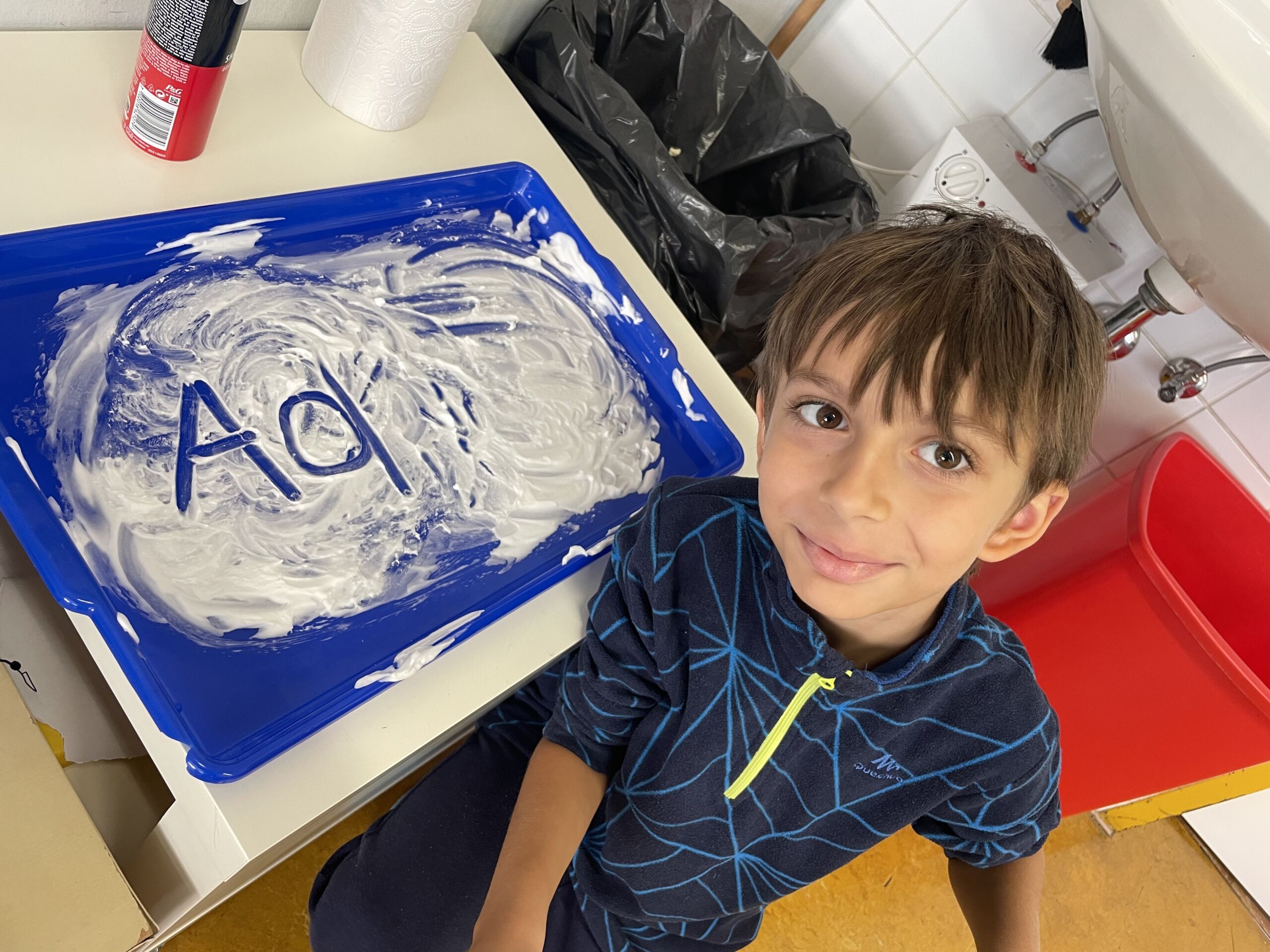 Am 17.9.2025 lernten die Kinder der 1b den ersten Buchstaben! Bei vielen verschiedenen Stationen konnten die Schüler das A und das a in unterschiedlichster Form üben. A und a wurden gelegt, nachgespurt, geAngelt, ein Tennisball wurde mit A-Steinen „gefüttert“ und in Rasierschaum geschrieben. Bei der Koststation konnten sich die Kinder mit einem Apfel stärken.