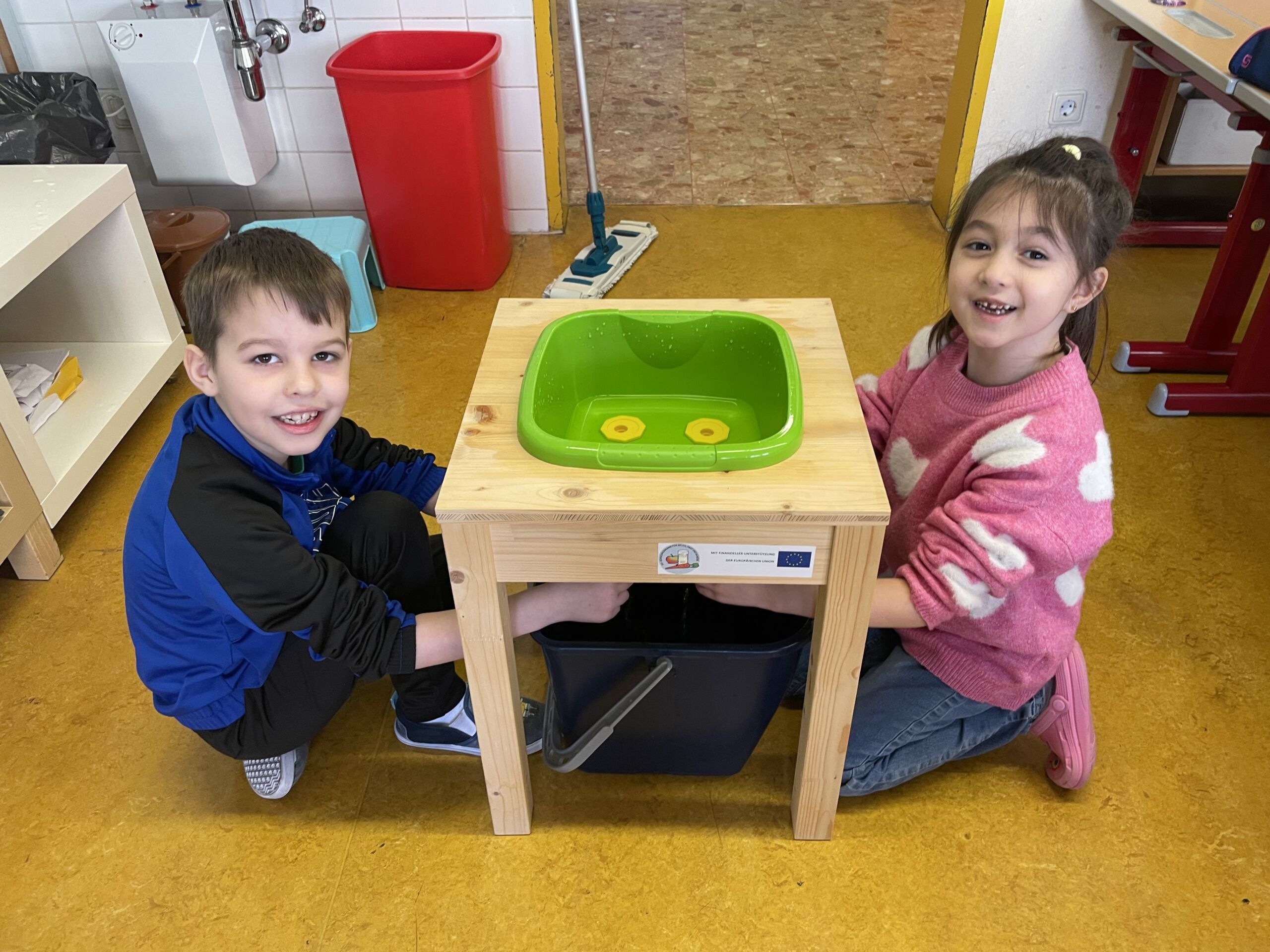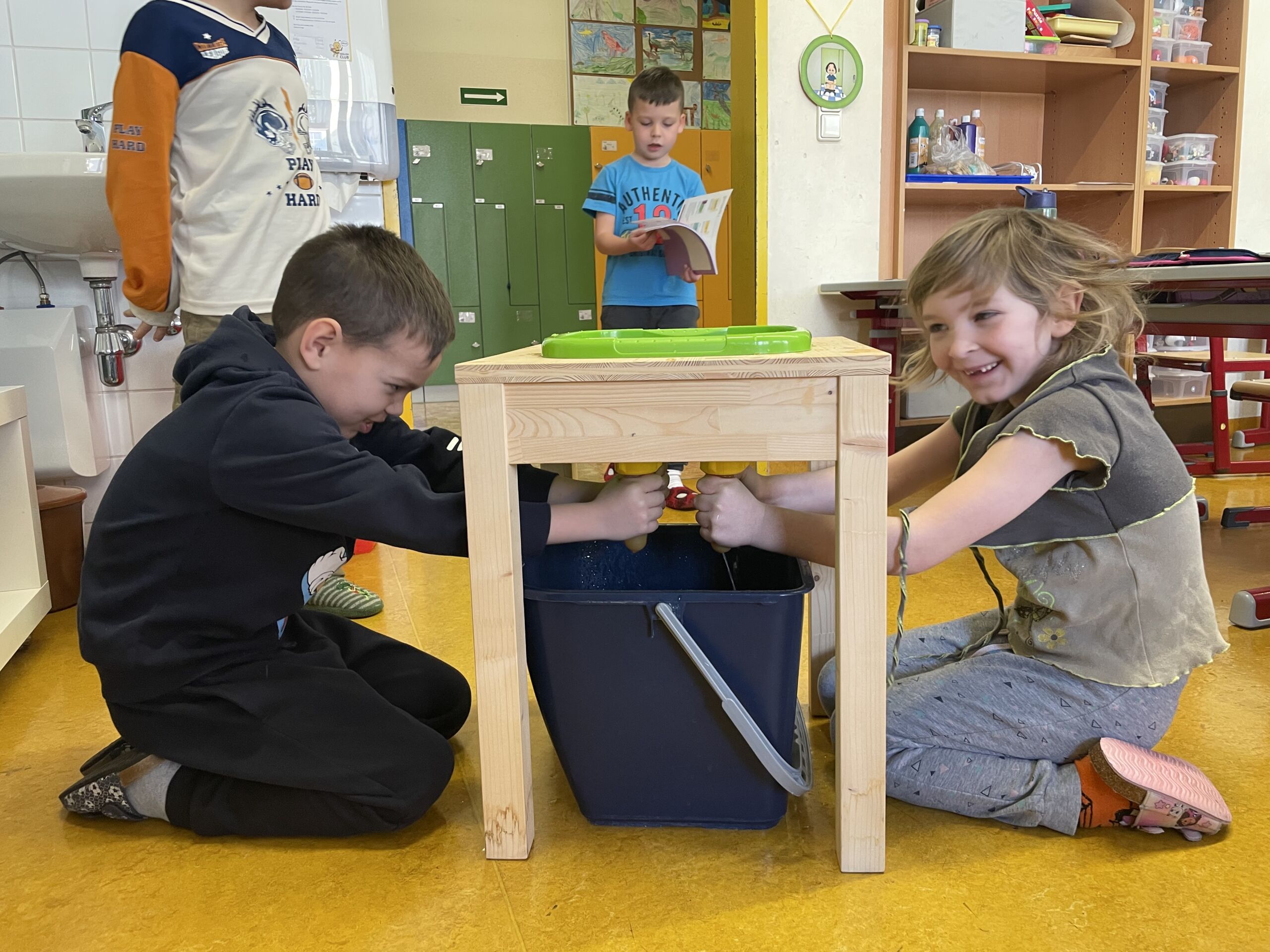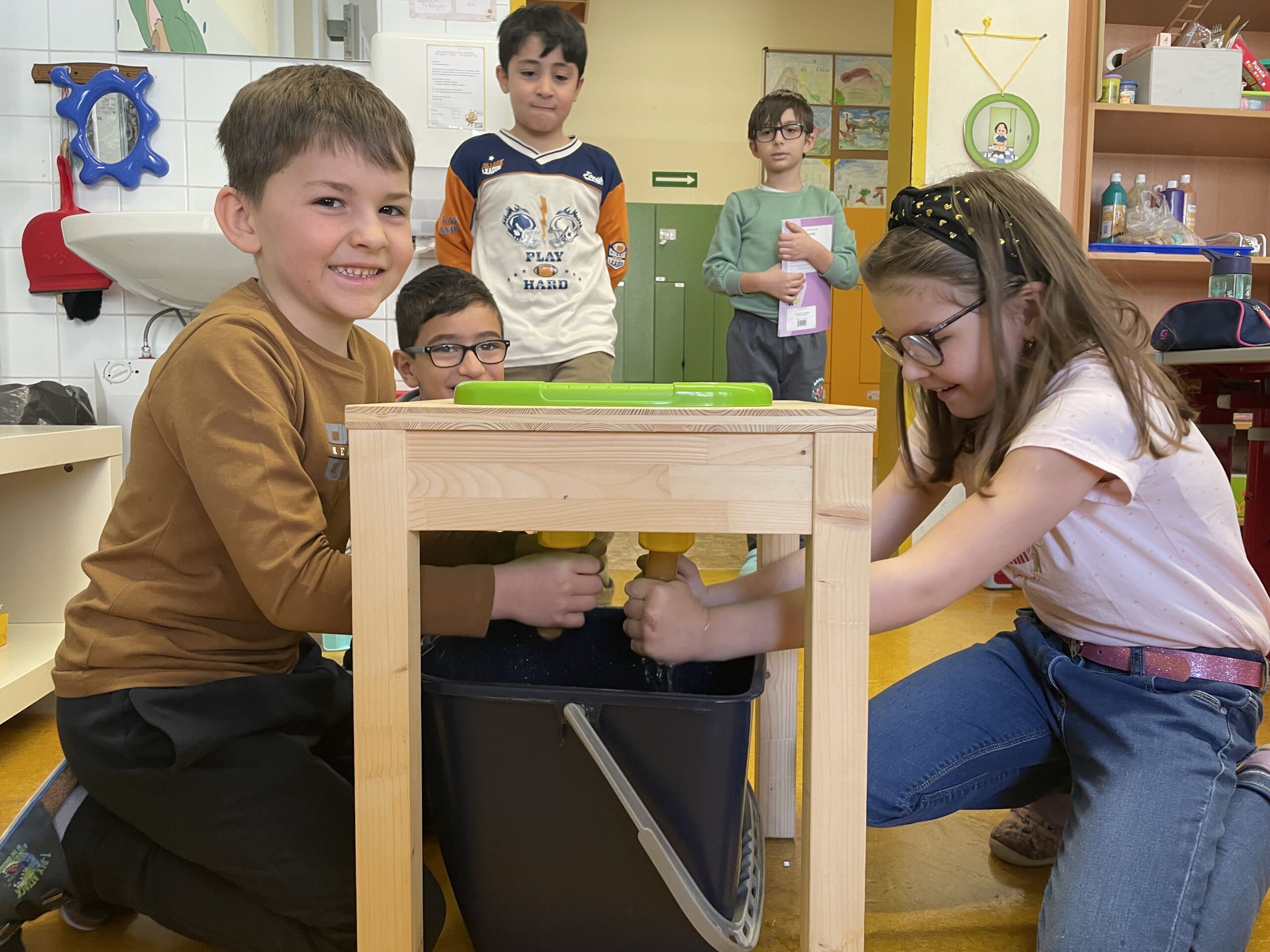 Der Buchstabentag zum Eu und eu war geprägt von Eulen, dem Euter und Euros. So konnten Deutsch- und Mathematik-Stationen kombiniert werden. Es gab viele Legearbeiten mit Euros, die auch am Gang und in der Aula Platz fanden. Das Highlight des Tages war aber der Melkschemel mit dem Euter. Fleißig melkten die Kinder und hatten viel Spaß dabei!