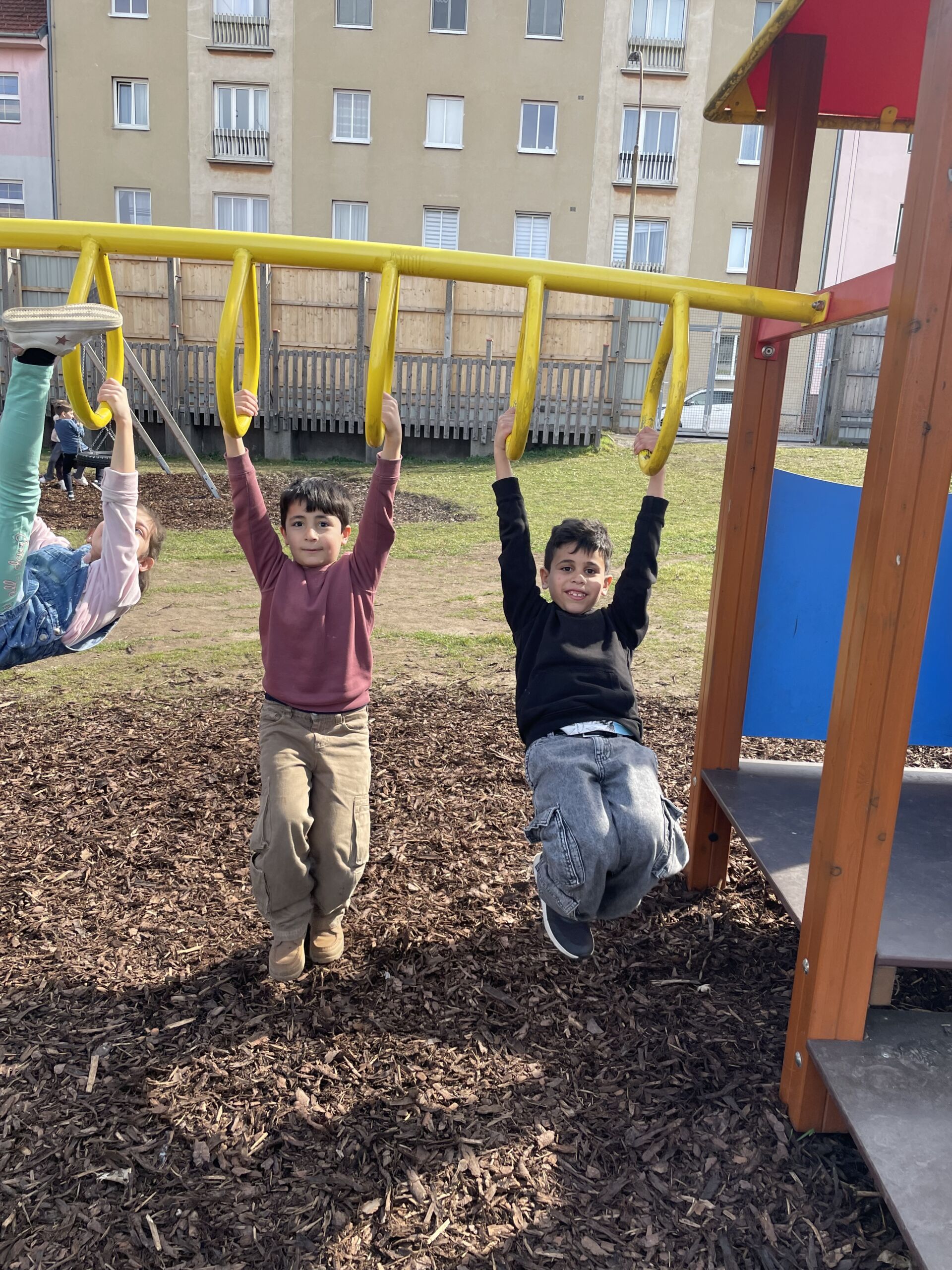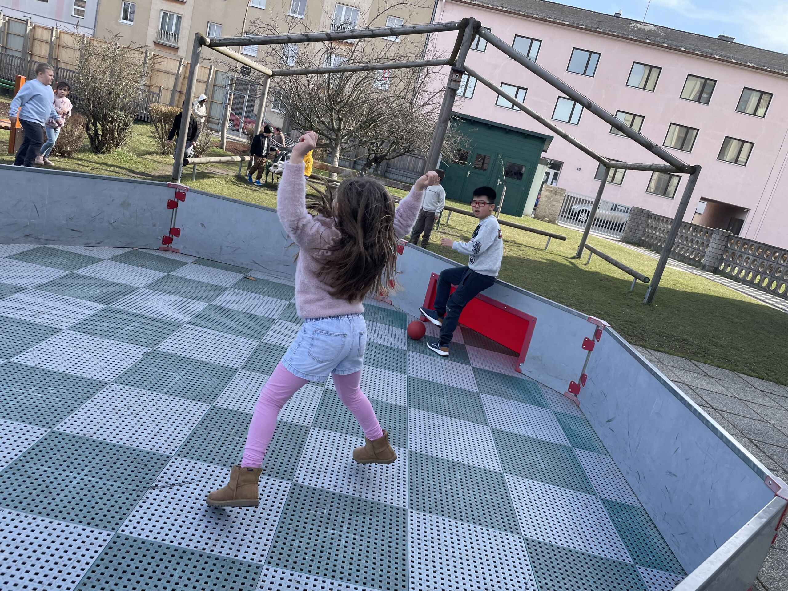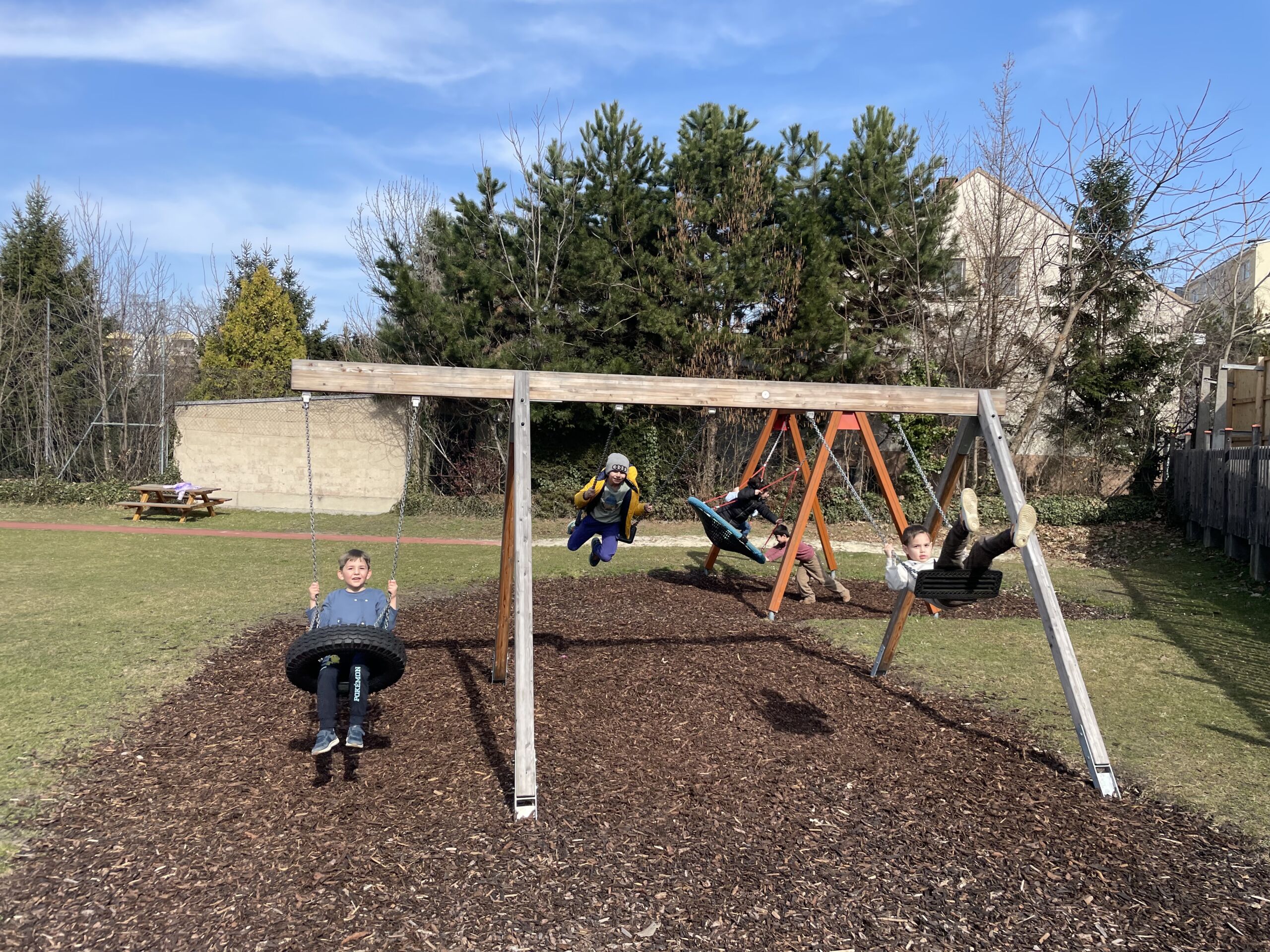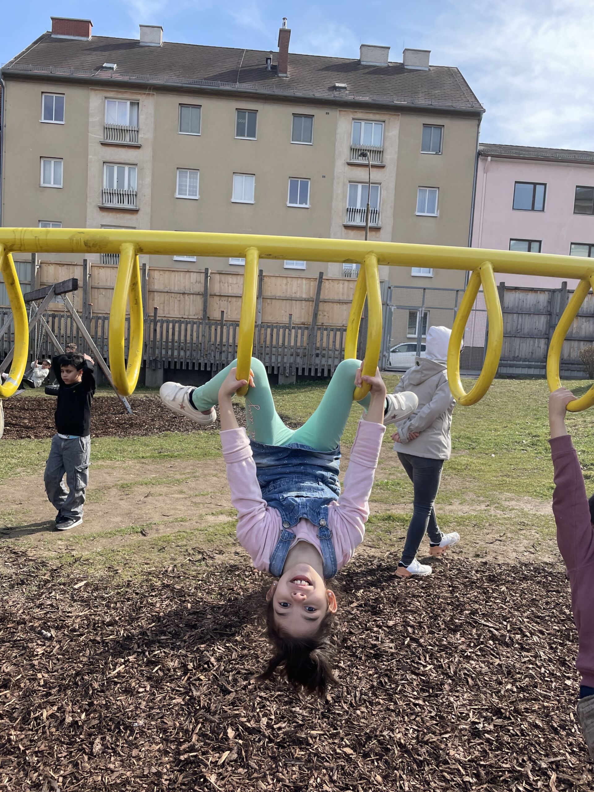 Endlich ist das Wetter wieder besser und wir können unseren tollen Schulgarten wieder uneingeschränkt nutzen. Dieser bietet viel Platz und Gelegenheit zum Laufen, Rutschen, Spielen und Klettern. Die einen veranstalten ein Fußballmatch, die anderen sausen das Klettergerüst rauf und runter und wieder andere lassen die Seele in der Nestschaukel baumeln.
