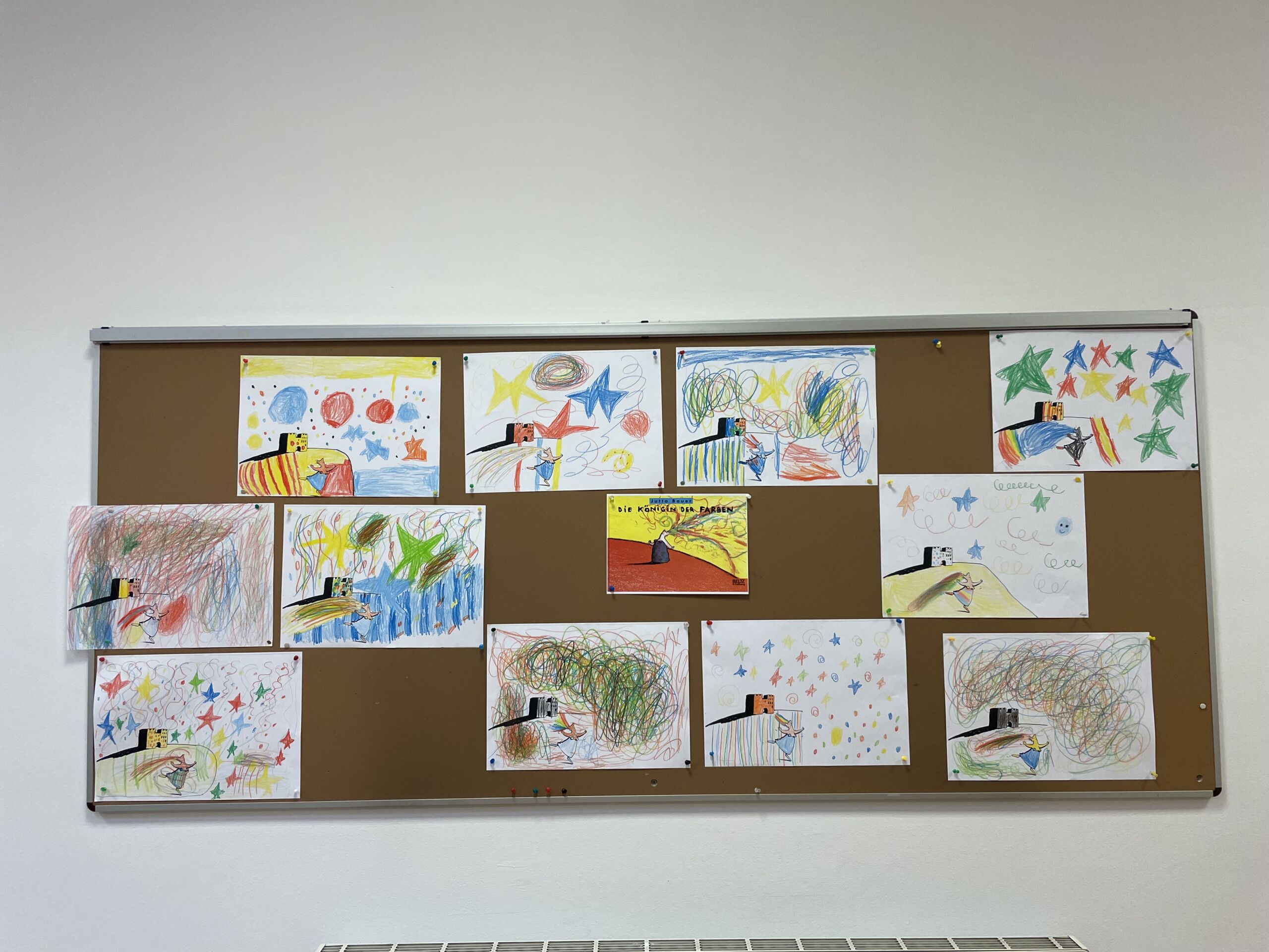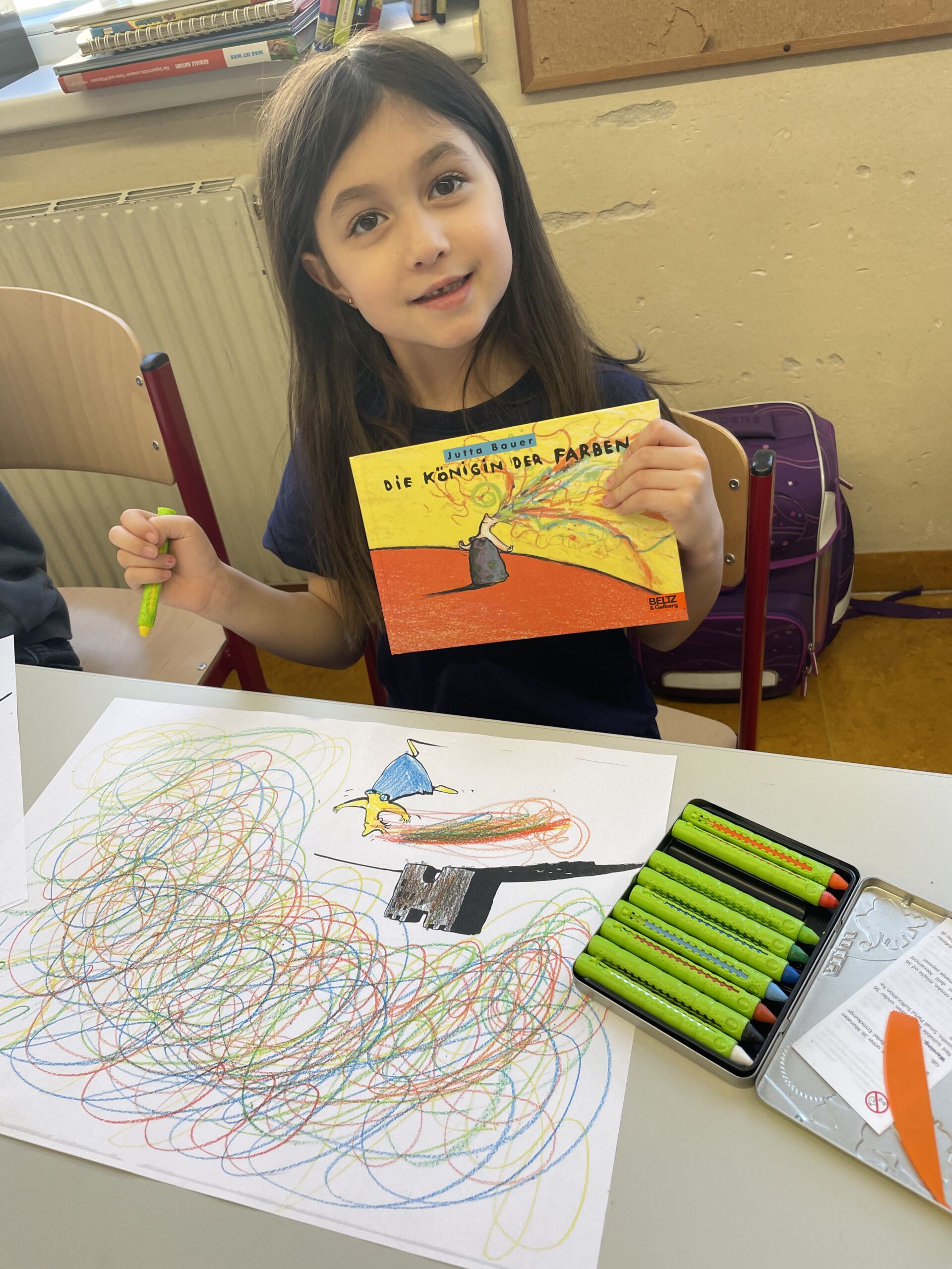 Am Freitag lernten die Schüler „Malwida, die Königin der Farben“ kennen. Diese emotionsgeladene Frau tanzt wild mit ihren Untertanen, den Farben. Diesen Tanz haben die Buben und Mädchen in einer Zeichnung festgehalten.
