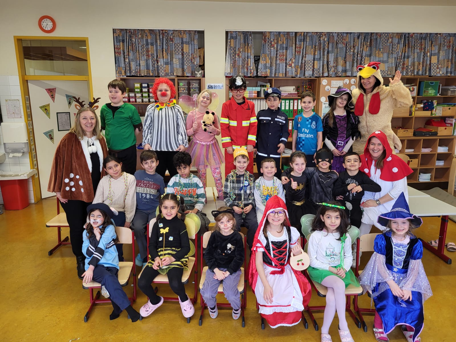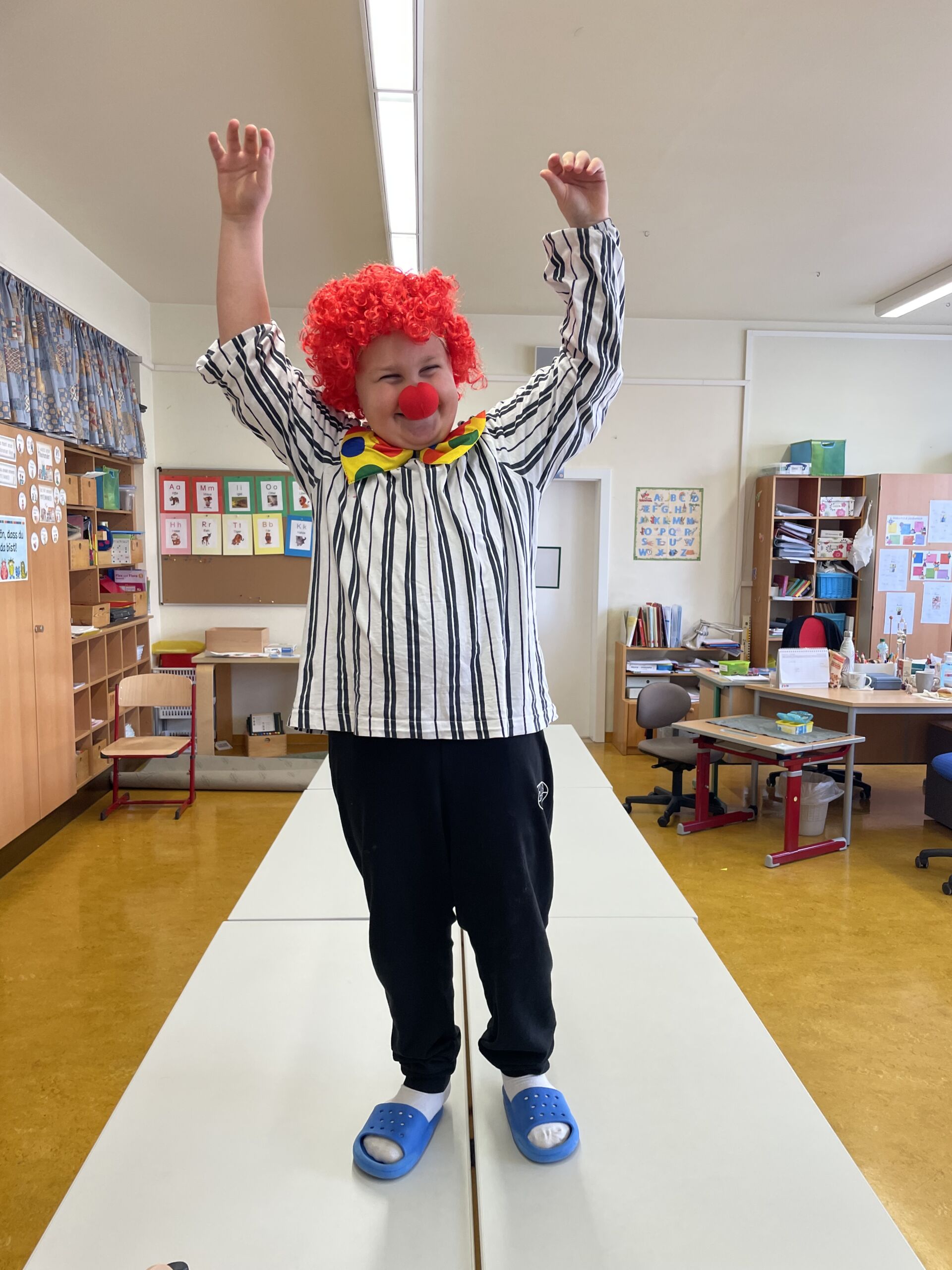 Schon am 16.2.2026 feierte die 1b in den letzten beiden Unterrichtsstunden ein Faschingsfest. Gejausnet wurde gemeinsam auf einer großen Faschings-Tafel, auf der die vom Elternverein gesponsorten Krapfen nicht fehlen durften. Vielen Dank dafür!