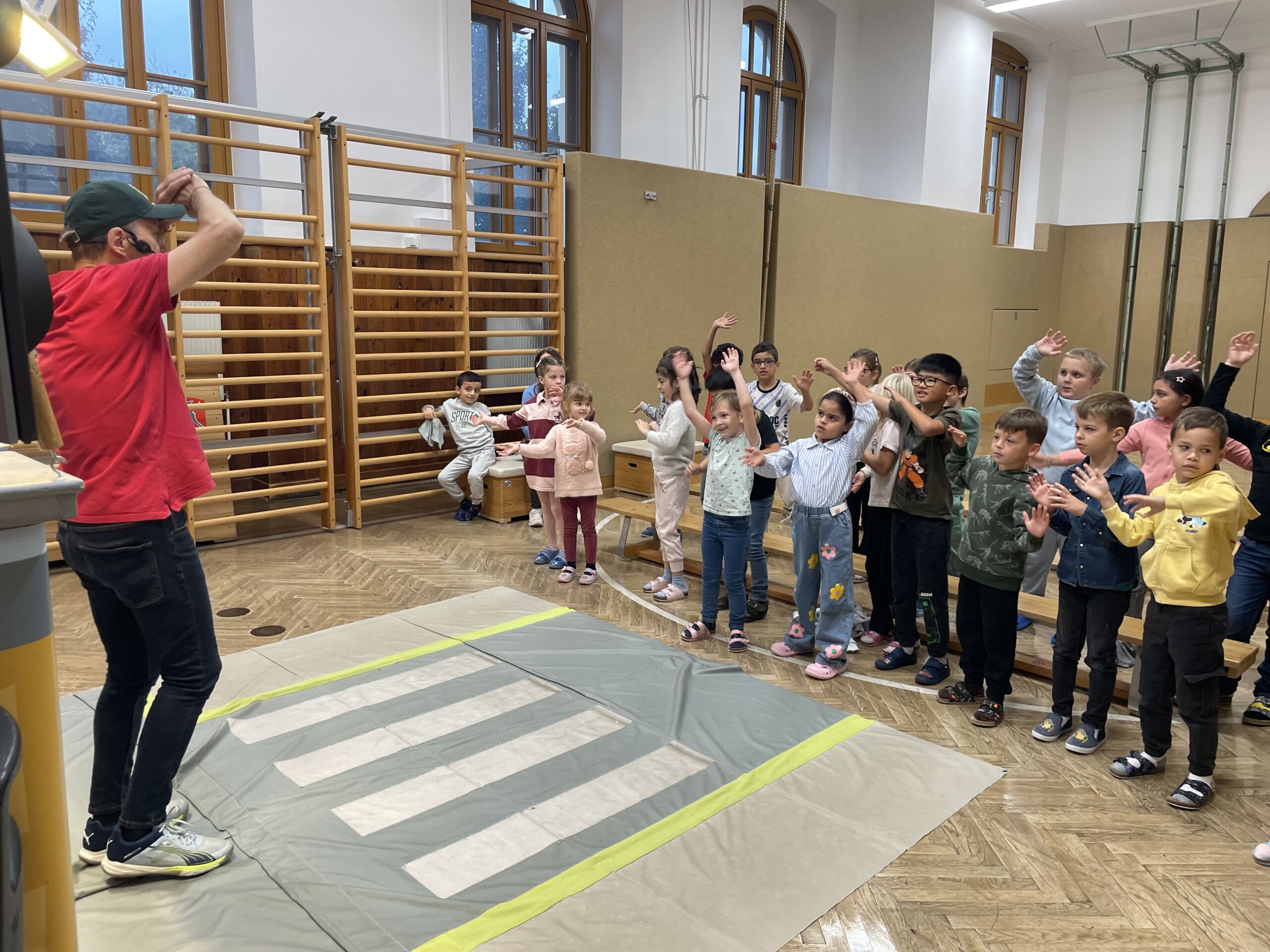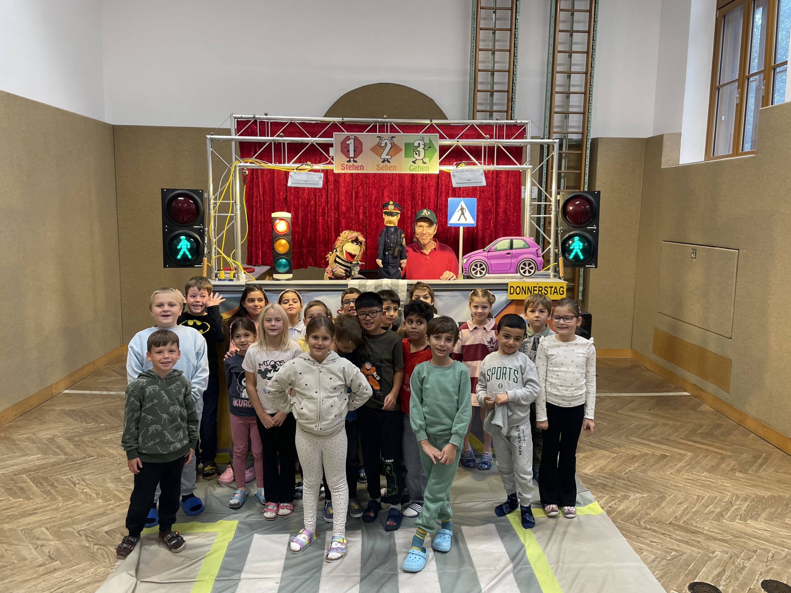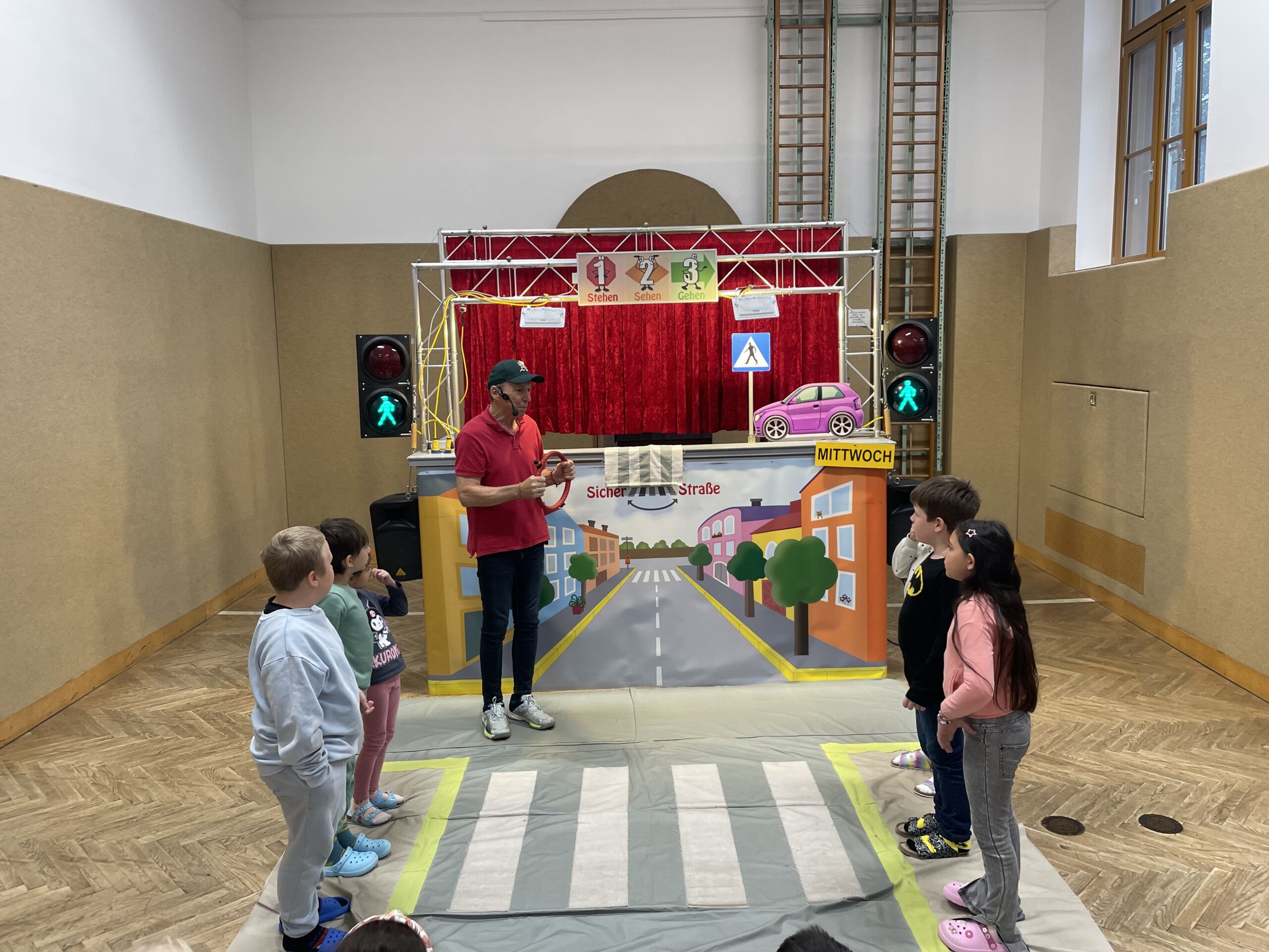 Am 1. Oktober 2025 wurden die Kinder von Antonia besucht. Dies ist eine Handpuppe, die im Rahmen eines interaktiven Theaters wichtige Inhalte der Verkehrserziehung vermittelt. Antonia übt gemeinsam mit den Kindern das richtige Überqueren der Straße, das richtige Verhalten auf Kreuzungen und den Unterschied zwischen Fußgänger- und Autofahrerampel. Alfred und der Polizist erklären die Regeln und helfen den Kindern. Als Belohnung gibt es für den Affen Antonia natürlich immer eine Banane!