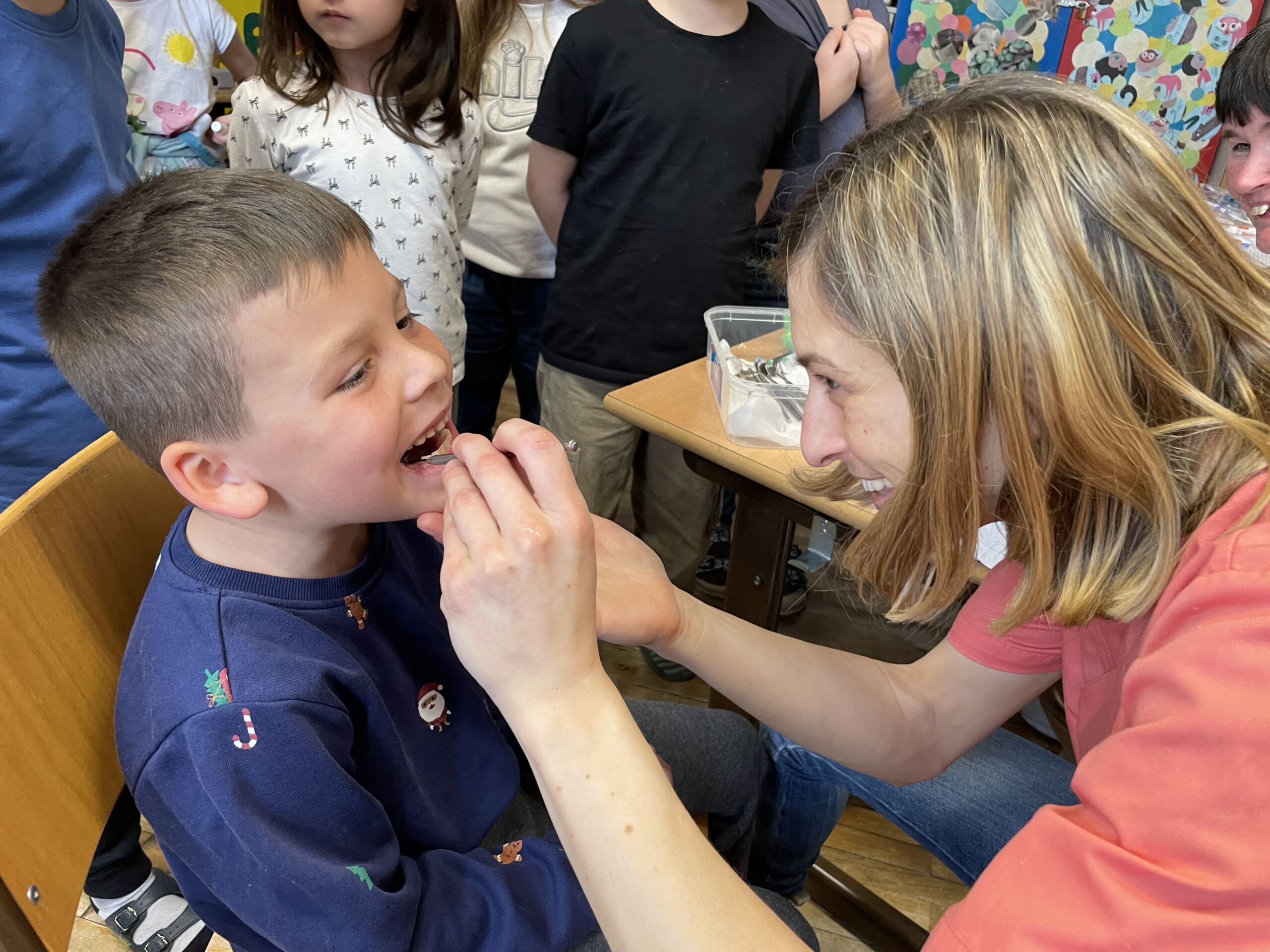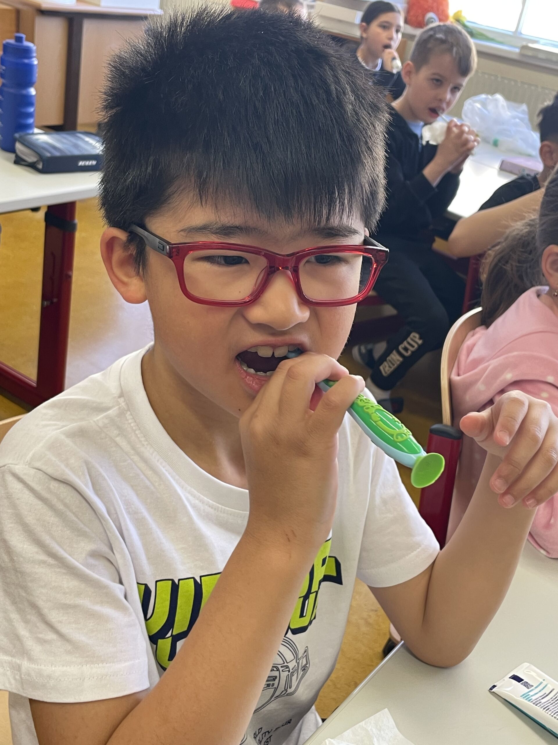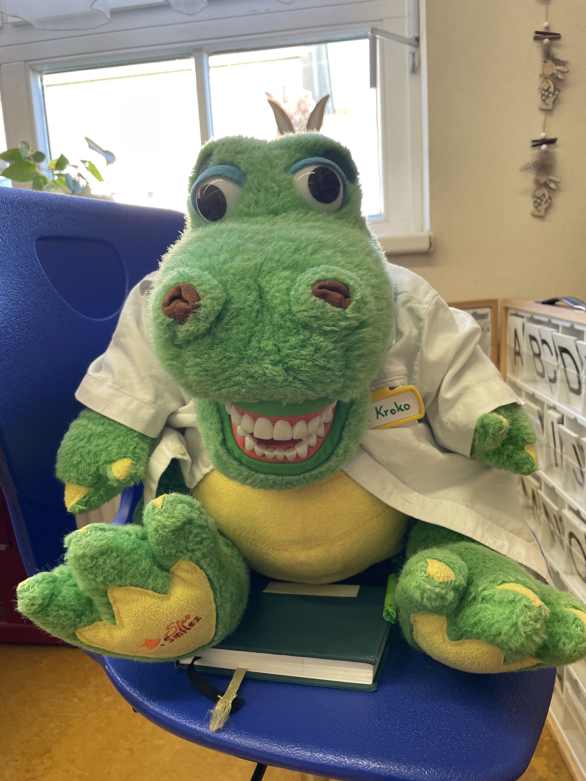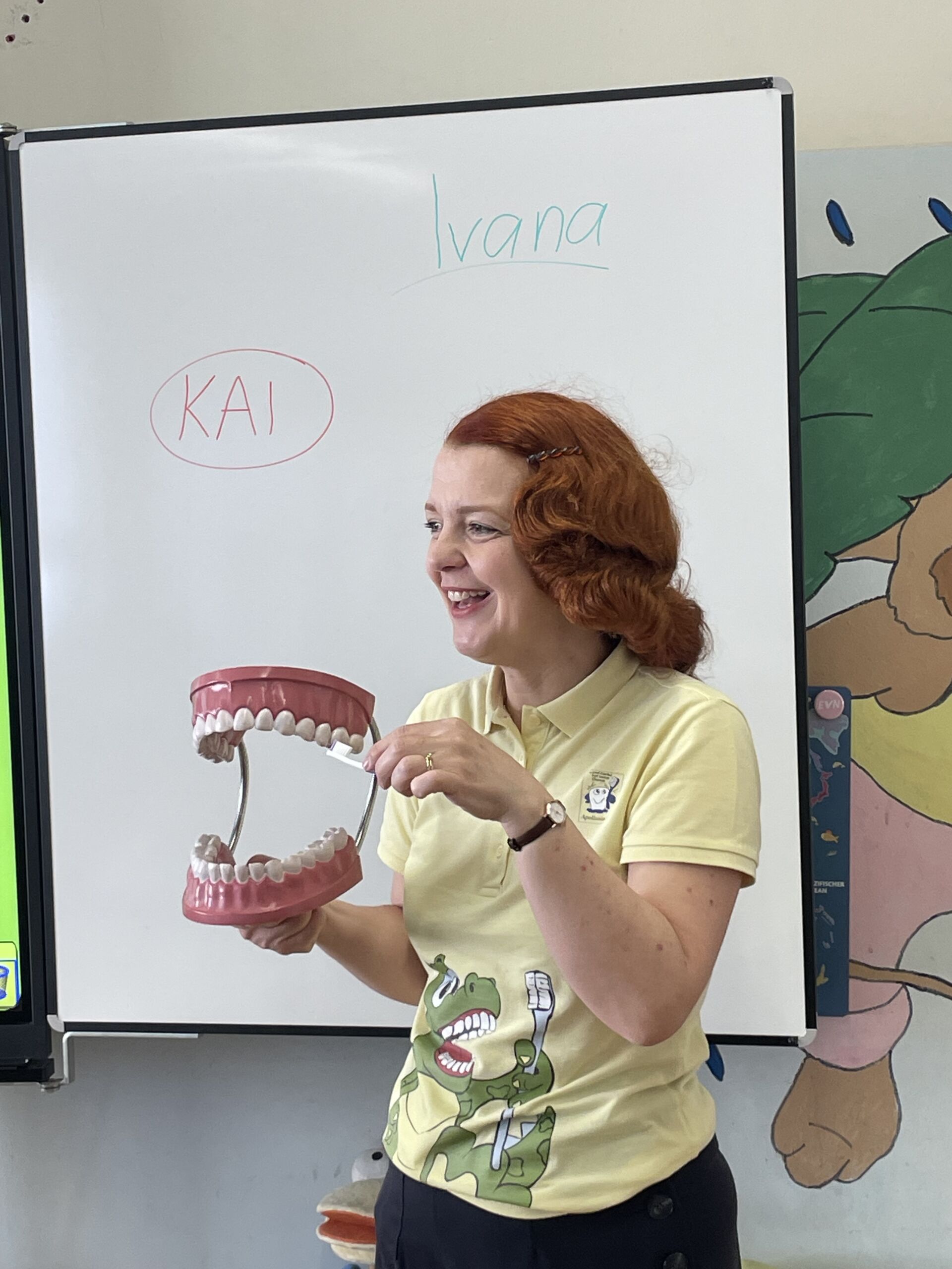 In den letzten Tagen lernte die Kinder der 1b Vieles über die Zähne. Dafür hatten wir zwei Experten bei uns zu Besuch! Am 8. April besuchte uns wieder Ivana mit ihren Freunden Kroko und Willi. Gemeinsam sprachen sie über das richtige Zähneputzen, Wackelzähne, Karies und auch über den Besuch bei dem Zahnarzt. So wussten die Kinder schon genau Bescheid, als dann Frau Dr. Haiden eine Woche später zu uns in die Schule kam. Alle Kinder zeigten stolz ihre Zähne, Zahnlücken und Erwachsenen-Zähne her. Zur Belohnung gab es eine Zahnbürste und eine Zahnpasta! Vielen Dank dafür!