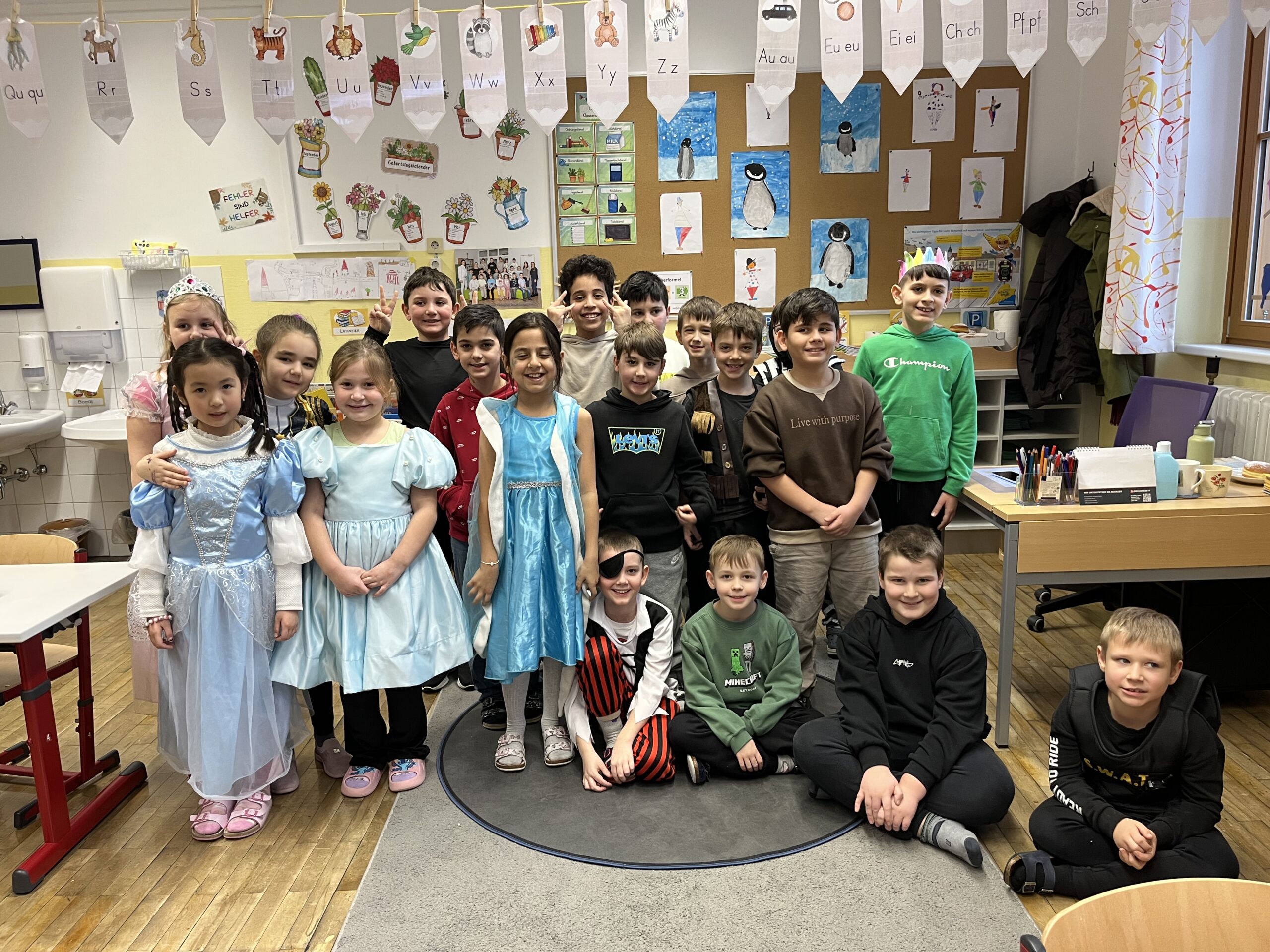 Mit bunten Farben gestalteten die Kinder 100 Fingerabdrücke und staunten, wie viele das eigentlich sind. In Partnerarbeit suchten sie 100 Wörter und hatten dabei viel Spaß. Außerdem wurde gleich auch noch Fasching gefeiert und zum Abschluss freuten sich alle über die leckeren Krapfen.