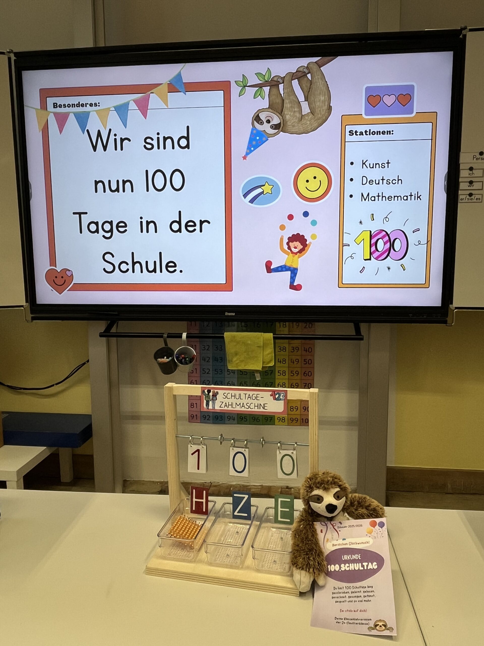 Die 2c feierte den 100. Schultag und das war ein richtig besonderer Tag! Zuerst besuchten wir die Stadtbibliothek und entdeckten wieder tolle Bücher. Danach ging es weiter in die Schule, wo noch viele Aufgaben und Überraschungen auf uns warteten.
