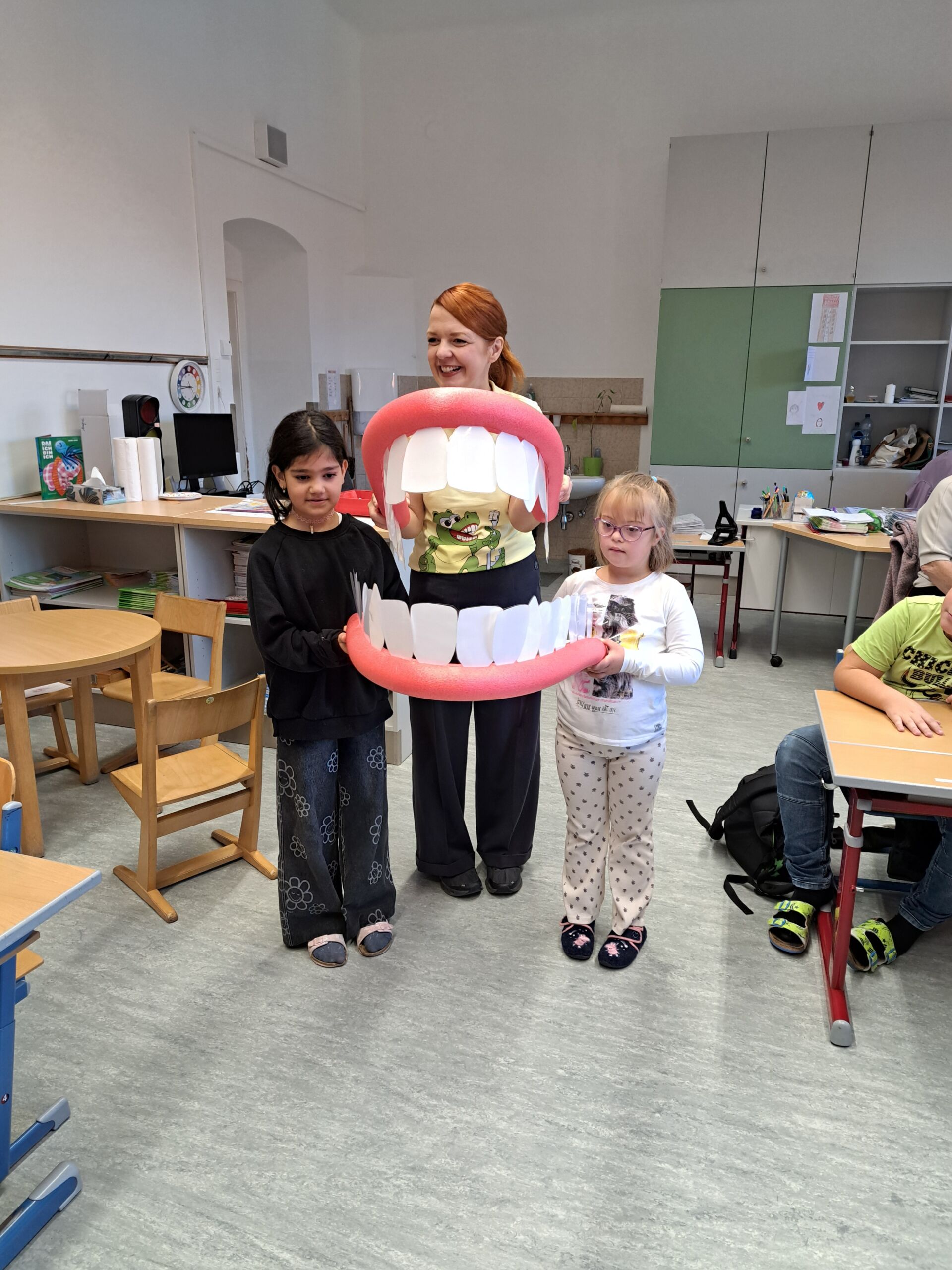 Am 3.10. kam uns im Rahmen de Projektes Apollonia unsere Zahngesundheitserzieherin Ivana besuchen. Mit ihr lernen wir sehr anschaulich und spielerisch alles zum Thema Zahngesundheit und haben dabei auch immer großen Spaß.