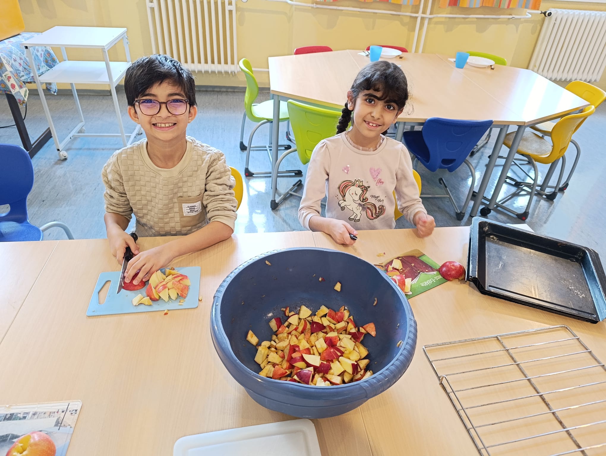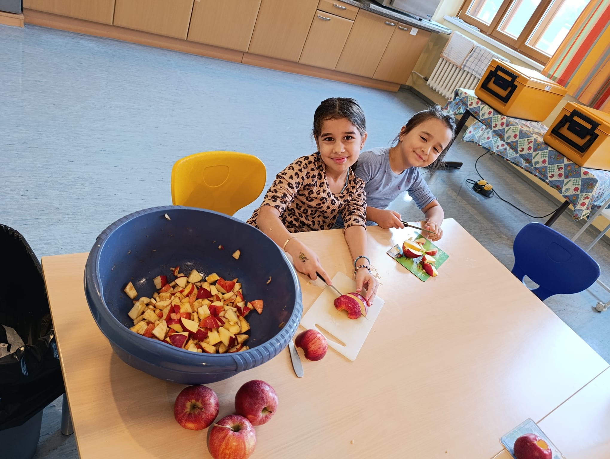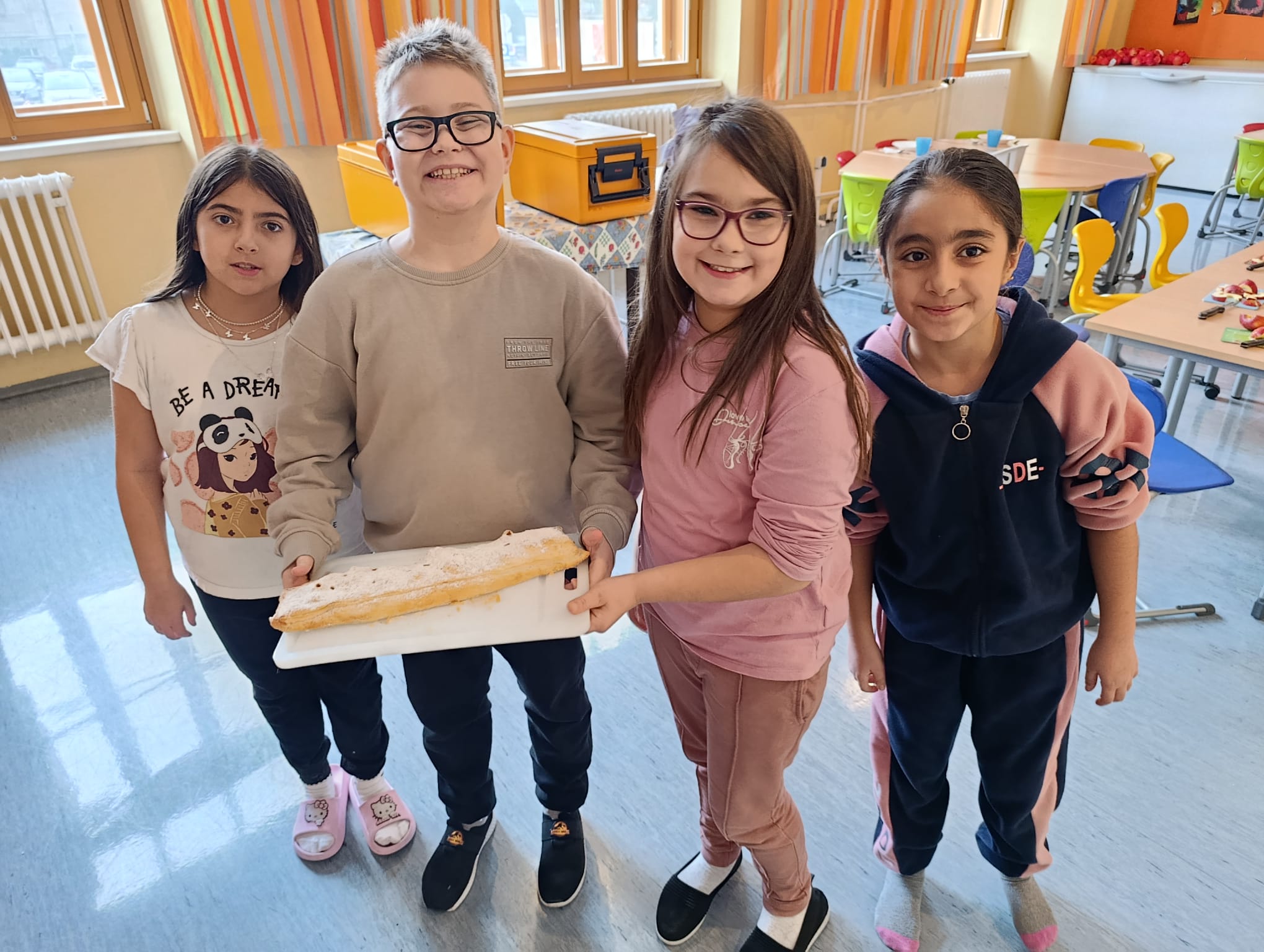 Am 23.10. hatten wir Tag der offenen Türe. In der 2b drehte sich anlässlich dazu alles um das Thema „Apfel“. Schon in der Früh halfen alle Kinder mit für jede Klasse und für die Besucher Apfelstrudel zu backen. Als um 9:00 Uhr die ersten Besucher kamen, duftete bereits das ganze Schulhaus danach. :) In der Klasse durften die Kinder verschiedene Stationen zum Thema Apfel besuchen und gingen am Ende mit einem selbst gebastelten Apfelbüchlein nach Hause. Was für ein aufregender Tag!