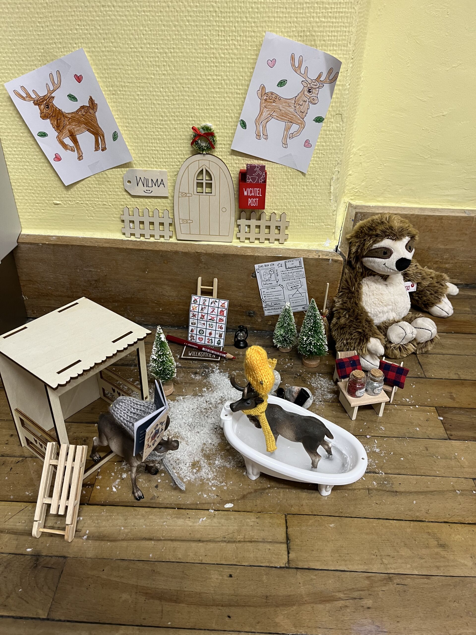 Während der Weihnachtszeit ist unser Klassenwichtel Wilma bei uns eingezogen. Jeden Tag überraschte sie uns mit einem liebevoll geschriebenen Brief, spielte kleine Streiche und stellte uns spannende Aufgaben. Die Kinder waren jeden Morgen schon ganz aufgeregt, was Wilma sich wohl wieder ausgedacht hatte. Gemeinsam wurde viel gelacht, gerätselt und gestaunt. Kurz vor Weihnachten verabschiedete sich Wilma wieder aus unserer Klasse und machte sich auf den Weg in ihren wohlverdienten Urlaub. Die schöne Wichtelzeit wird uns noch lange in Erinnerung bleiben.