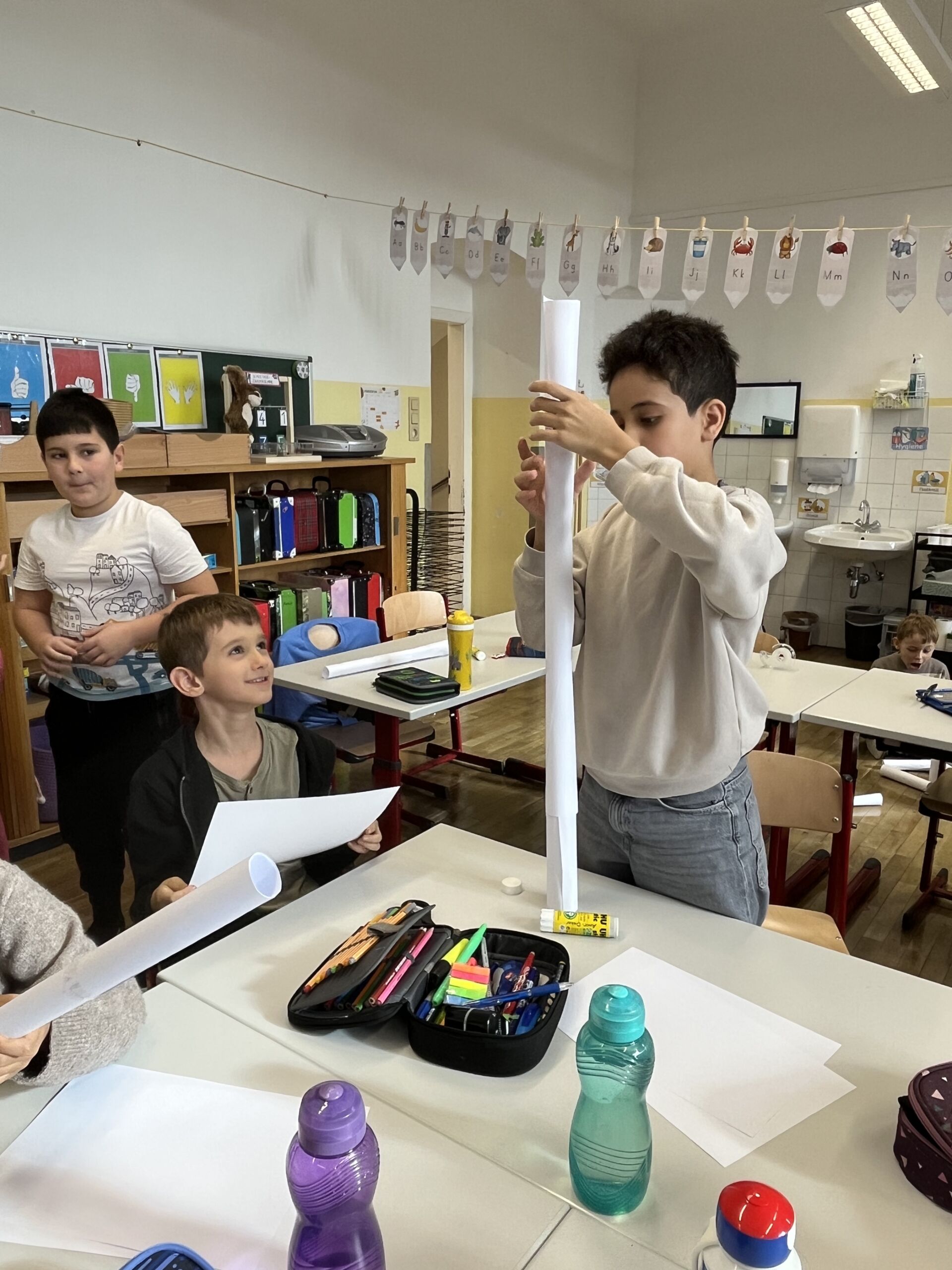 Im Fach „Technik und Design“ haben wir in Partnerarbeit Türme aus Papier gebaut. Dabei waren gute Ideen, Teamarbeit und Geduld gefragt! Gemeinsam wurde gefaltet, gerollt, geklebt und ausprobiert, wie der Turm am besten hält und möglichst hoch werden kann.