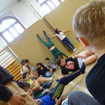 Für einen Projekttag kamen professionelle Künstler_innen in Mixed-abled Teams in unsere Schule. Nach kurzen Performances leiteten sie spielerisch konkrete Gruppenerfahrungen an. Neue Sichtweisen entstehen. Selbstvertrauen und Sicherheit, Neugier und Freude. Das „Trennende“ wird aufgelöst.