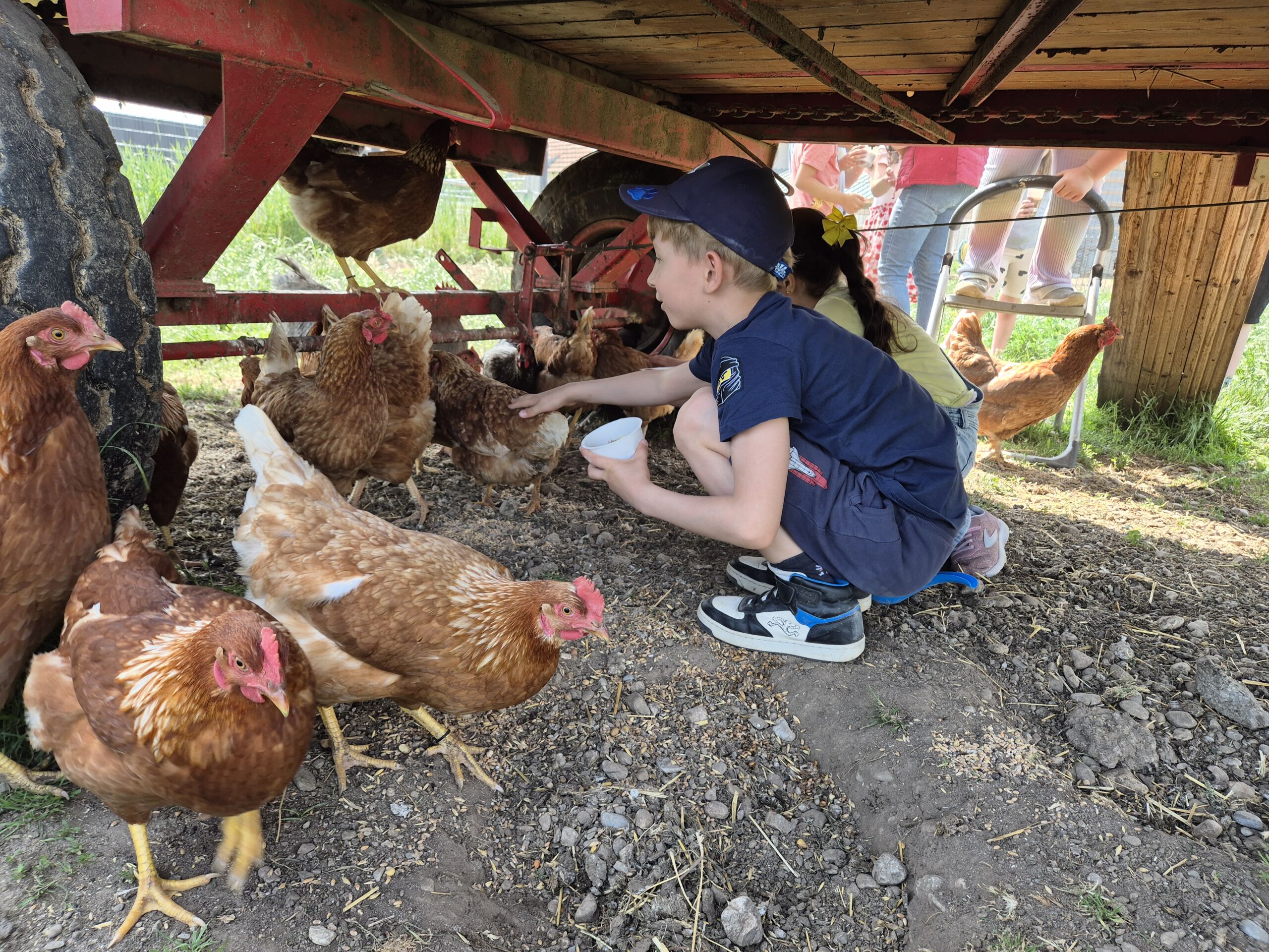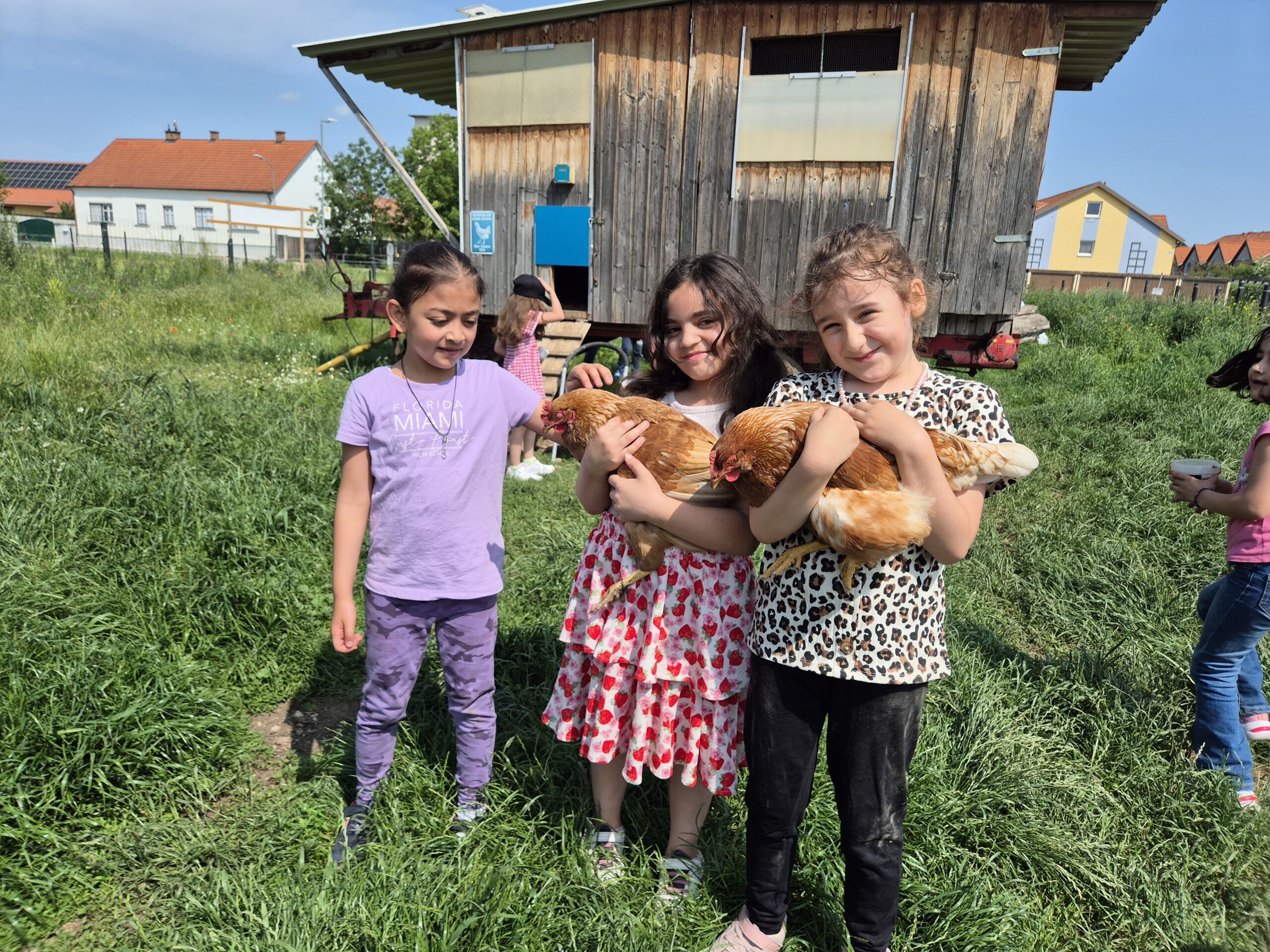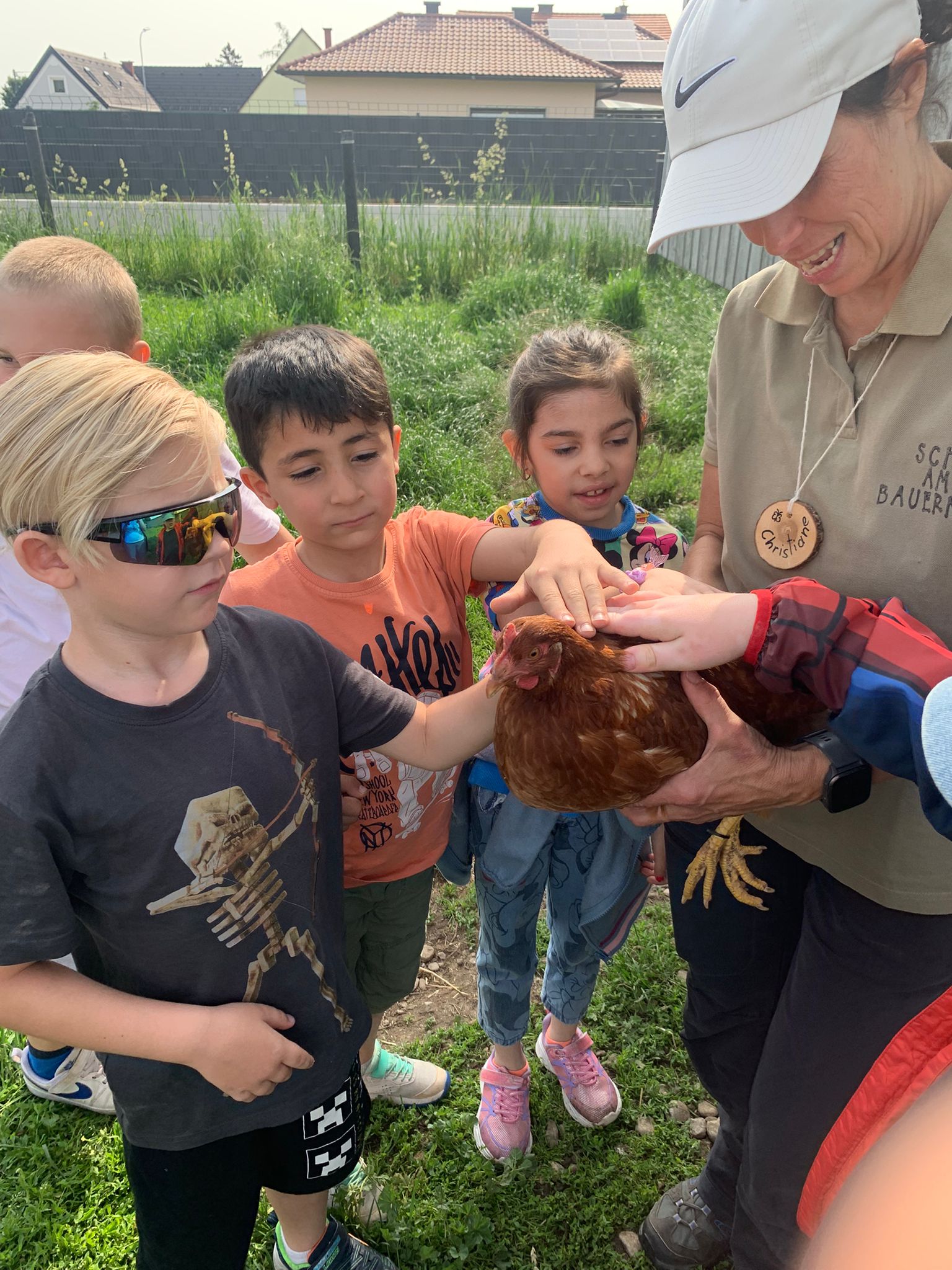 Heute besuchten die beiden Vorschulklassen den Bauernhof in Peisching. Wir hatten großen Spaß die verschiedenen Tiere auf dem Hof zu besuchen. Zuerst durften wir die Kühe füttern und ihnen beim Melken zuschauen. Die köstliche Milch durften wir anschließend kosten. Nach einer guten Jause besuchten wir die Hühner. Das hat uns besonders viel Spaß gemacht, denn wir durften sie nicht nur füttern, sondern auch fangen und sie herumtragen. Zum Schluss bekamen die niedlichen Häschen eine Streicheleinheit. Der sonnige und heiße Tag auf dem Bauernhof hat uns besonders großen Spaß gemacht, sodass der Abschied schwer viel.